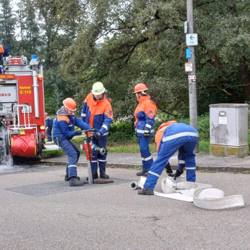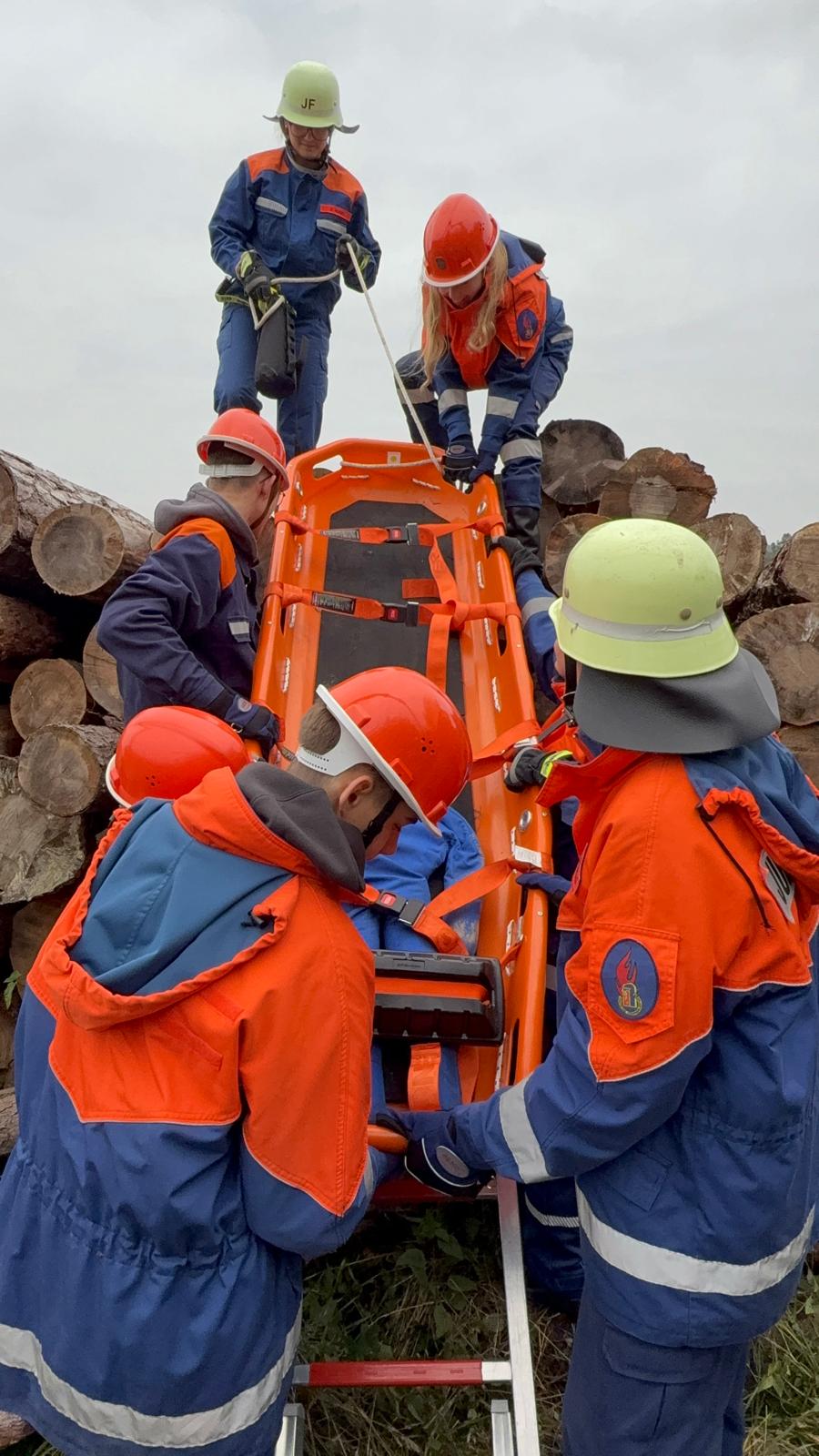 Der letzte Einsatz führte die jungen Feuerwehrleute gegenüber des Sägewerks zu einer verrauchten Garage in der sich drei Personen befanden. Auch diese Aufgabe wurde souverän gemeistert. Zum Abschluss durfte jeder noch eine Fahrt mit der Drehleiter genießen – ein echtes Highlight!