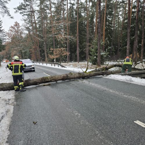 Den schweren Schneemassen hielt ein Baum auf der ST2220 Richtung Wassermungenau leider nicht stand und blockierte die Fahrbahn im Morgenverkehr. Mittels Kettensäge wurde der Baum schnell zusammengeschnitten und beseitigt. Nach ca. 15 Minuten konnten wir auch wieder in das Gerätehaus wieder einrücken.