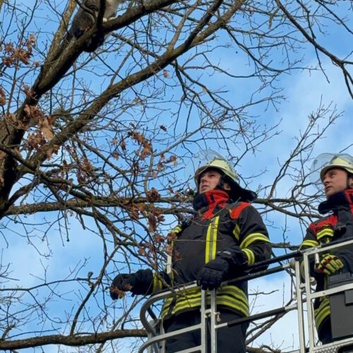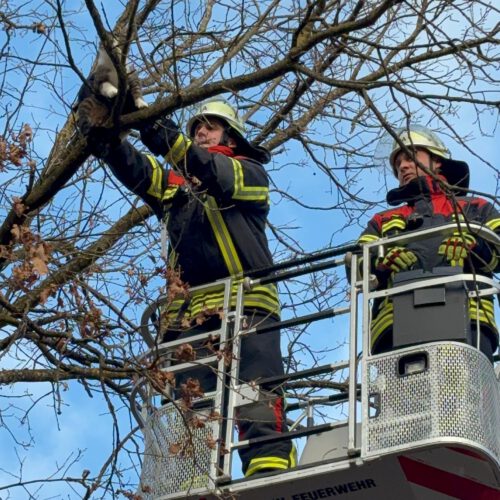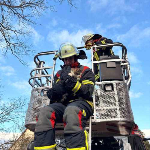 Retten, Löschen, Bergen und Schützen. Genau so lautet der Leitsatz der Feuerwehr. Heute wurden wir zu einem klassischen Rettungseinsatz nach Wassermungenau mit dem Stichwort 'Katze auf Baum' alarmiert. Bereits seit dem morgen saß 'Motschi' auf dem ca. 7m hohen Baum fest und kam nicht mehr herunter. Mit unserer Drehleiter wurde die kleine Katze aus ihrer misslichen Lage befreit und bedankte sich mit einem lautem 'Miau' bei den Einsatzkräften.